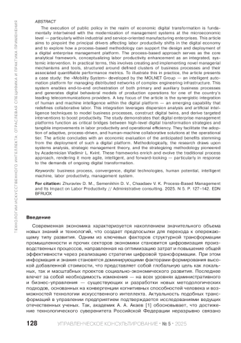 В статье показано, что цифровые платформы управления предприятием служат связующим звеном между стратегиями цифровой трансформации и практическим ростом производительности труда и эффективности производства, обеспечивая внедрение процессно-ориентированных, адаптивных и человеко-технологических решений на операционном уровне.