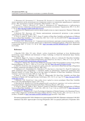 9. Tiwari R., Kumar R., Malik S., Raj T., Kumar P. Analysis of Heart Rate Variability and Implication of Different Factors on Heart Rate Variability // Curr. Cardiol. Rev. 2021. Vo l. 17, No 5. Art. No e160721189770. DOI: 10.2174/1573403X16999201231203854