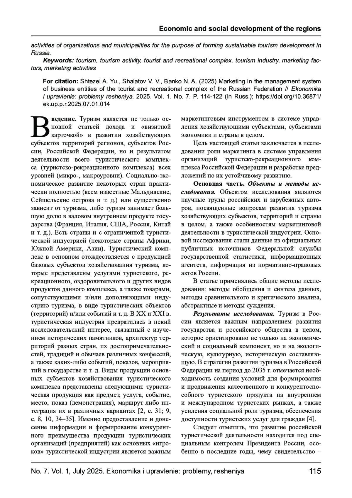 1. Андресян И. Ф. Развитие туризма в России на основе маркетинговой информации хозяйствующих субъектов и субъектов экономики // Экономика устойчивого развития. 2024. № 2(58). С. 21-24. EDN: IUNJQV