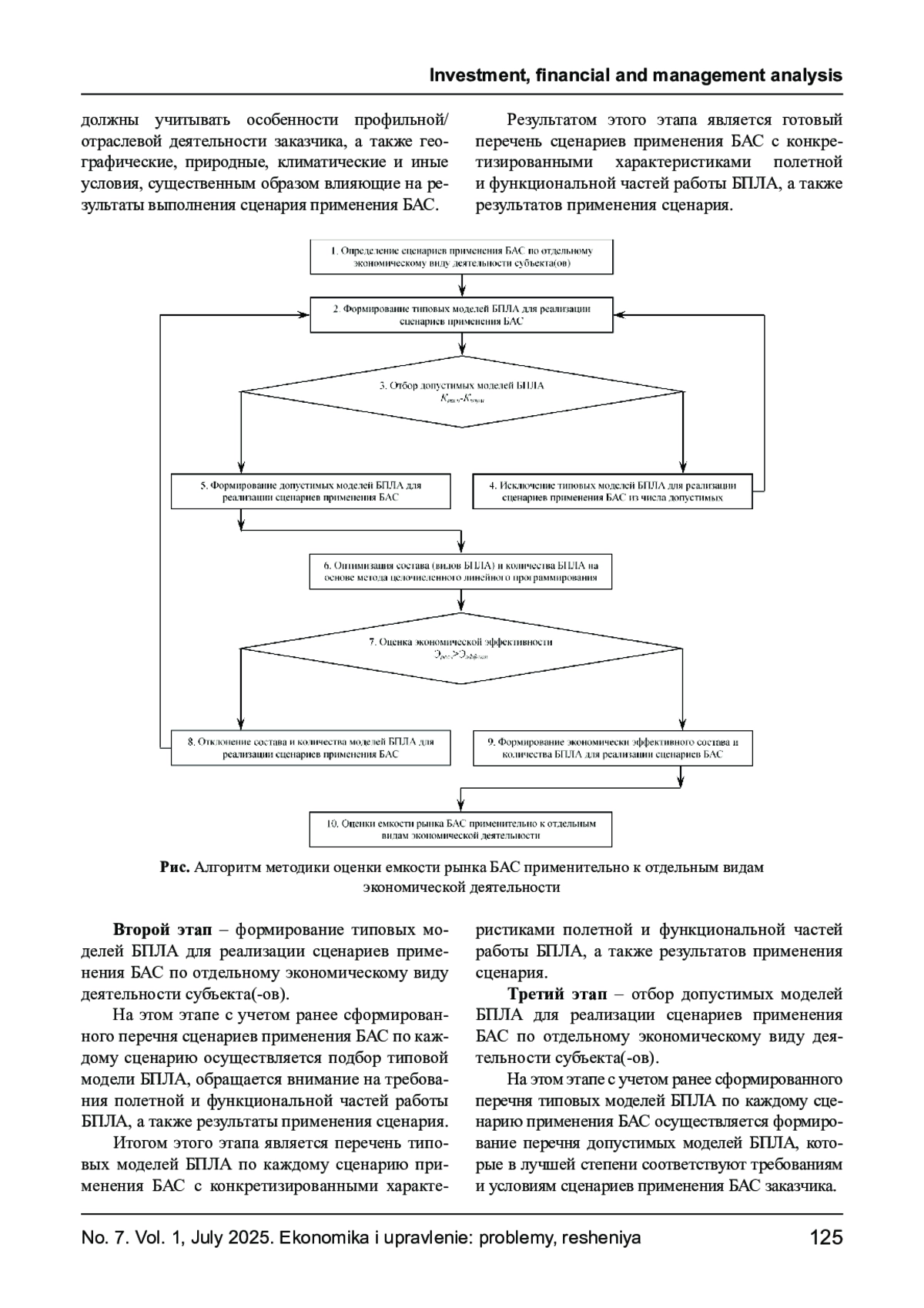 Национальный проект «Беспилотные авиационные системы» столкнулся с проблемой несоответствия разрабатываемых технологий реальным потребностям промышленности, связанную с трудностями в оценке рыночного спроса и емкости рынка беспилотных авиационных систем (БАС). Эта проблема была отмечена рядом экспертов в указанной области, включая В. В. Шпака и А. С. Малькова, а также обсуждалась на форуме «АЭРОНЕКСТ 2024», где поднимался вопрос о необходимости корректировки стратегии национального проекта с учетом различных сценариев применения БАС. В рамках статьи предложена методика оценки емкости рынка БАС применительно к отдельным видам экономической деятельности.