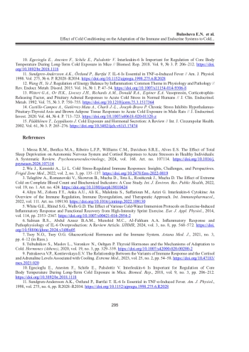 10. Egecioglu E., Anesten F., Schéle E., Palsdottir V. Interleukin-6 Is Important for Regulation of Core Body Temperature During Long-Term Cold Exposure in Mice // Biomed. Rep. 2018. Vol. 9, No 3. P. 206-212. DOI: 10.3892/br.2018.1118
