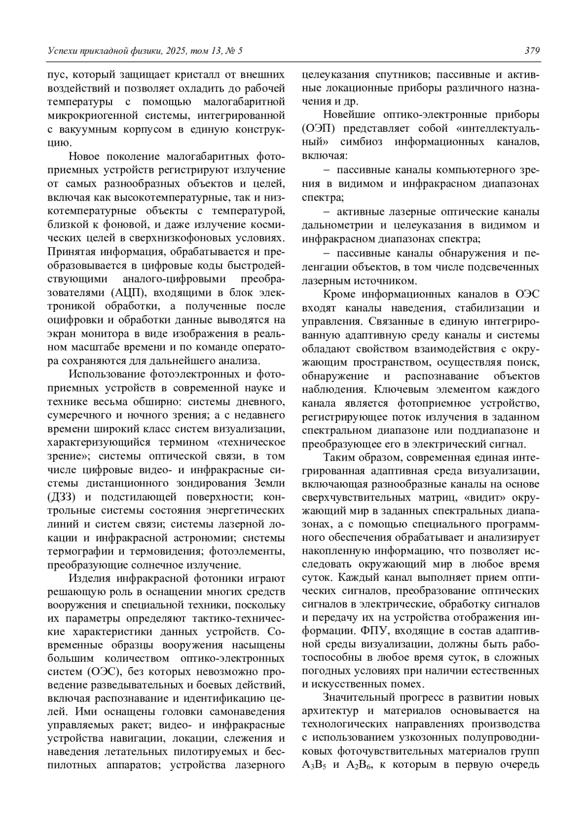 - Khamidullin K. A., Baliev D. L., Lazarev P. S., Boltar K. O., Polesskiy A. V., Burlakov I. D., Chepunov E. L., Gusarova N. I., Popov S. V. / Journal of Communications Technology and Electronics. 2019. Vol. 64. № 3. P. 319–324.