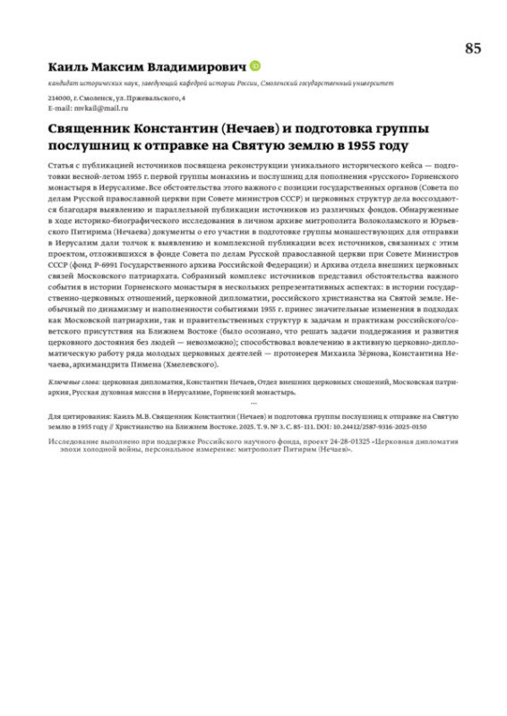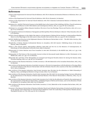 12. Каиль М.В. Ближневосточное направление в дипломатической миссии Московского Патриархата 1943 - середины 1950-х гг. // Электронный научно-образовательный журнал “История”. 2021. Т. 12. № 8 (106).