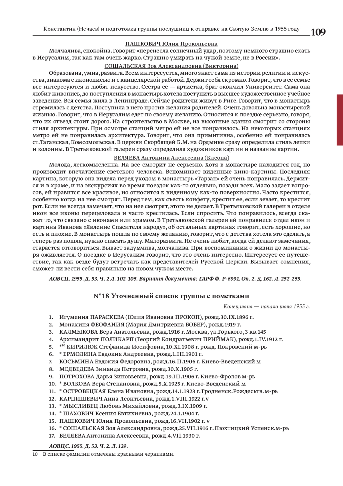 6. Государственный архив Российской Федерации. Ф. Р-5446 Оп. 86 а. Д. 9924 (О приеме в гражданство СССР паломниц, монахинь и служителей культа. Проживающих в Израиле, 1952 г.) - 47 л.