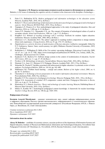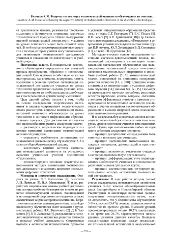 Статья: Вопросы активизации познавательной активности обучающихся на занятиях по дисциплине «Технология» (2025)
