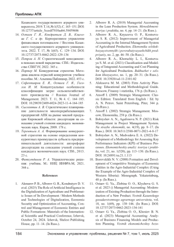 3. Алборов Р. А., Князева О. П., Концевая С. Р. Совершенствование управленческого учета в системе внутреннего управления сельскохозяйственным производством // Экономика сельскохозяйственных и перерабатывающих предприятий. 2012. № 2. С. 46-50. EDN: OPGXOH