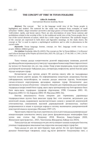 СЕНДАЖЫ Л. Ч. КОНЦЕПТ ОТ ‘ОГОНЬ’ В УСТНОМ НАРОДНОМ ТВОРЧЕСТВЕ ТУВИНЦЕВ // ХООМЕЙ И КУЛЬТУРНОЕ НАСЛЕДИЕ НАРОДОВ ЦЕНТРАЛЬНОЙ АЗИИ. 2025. № 2