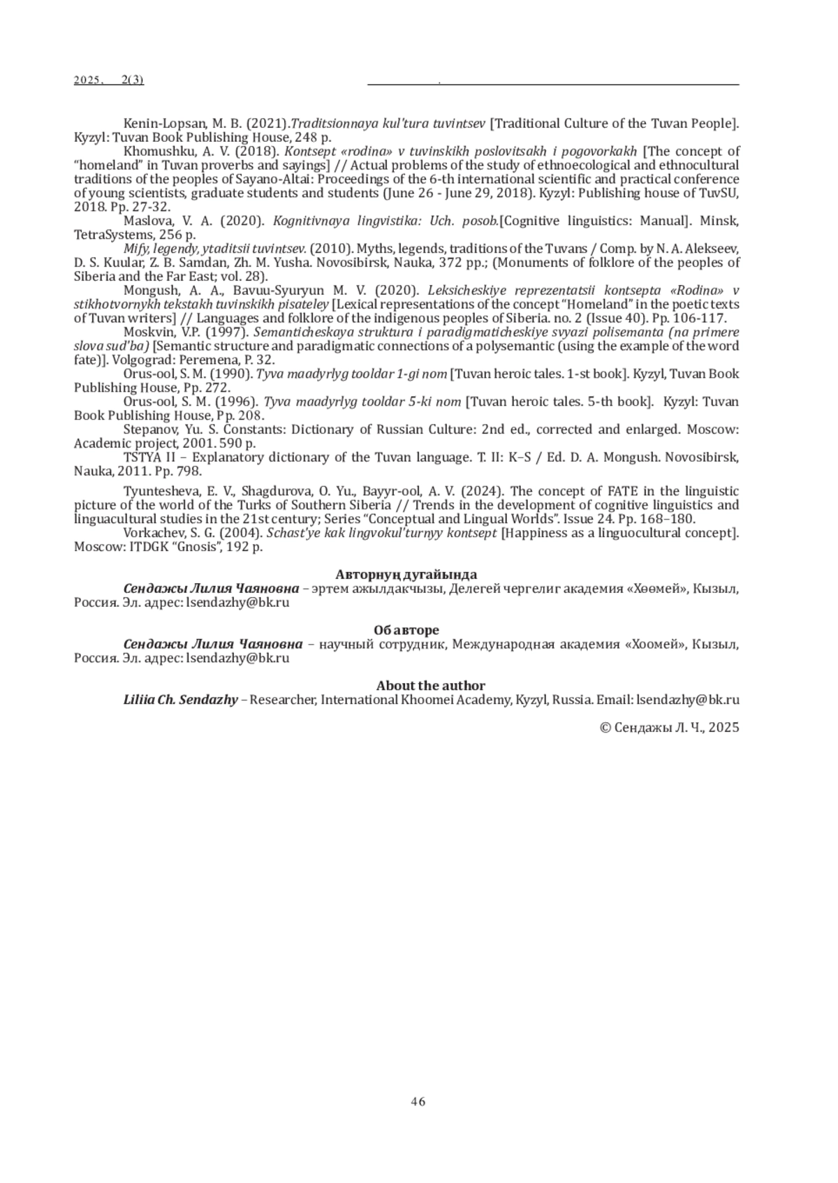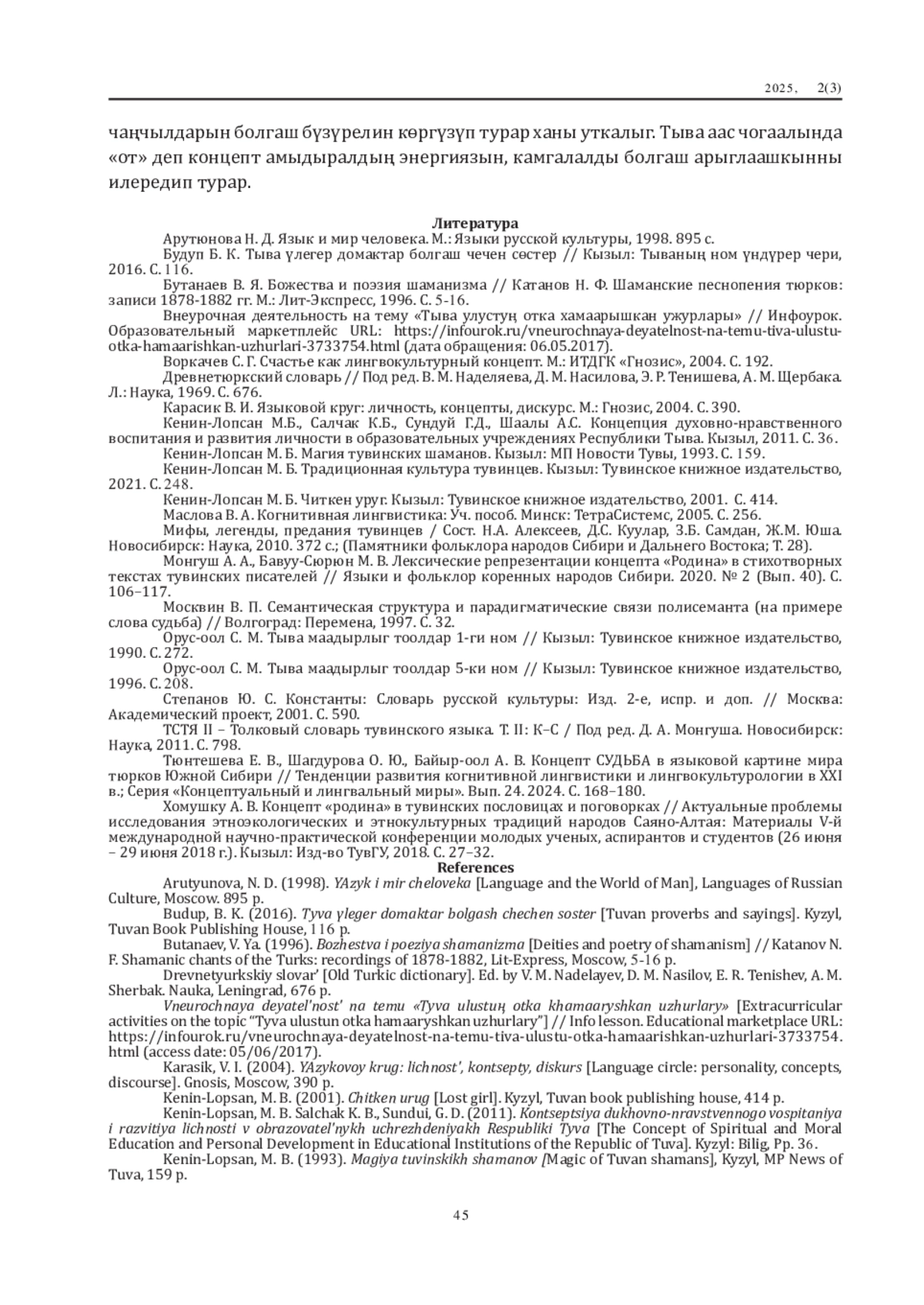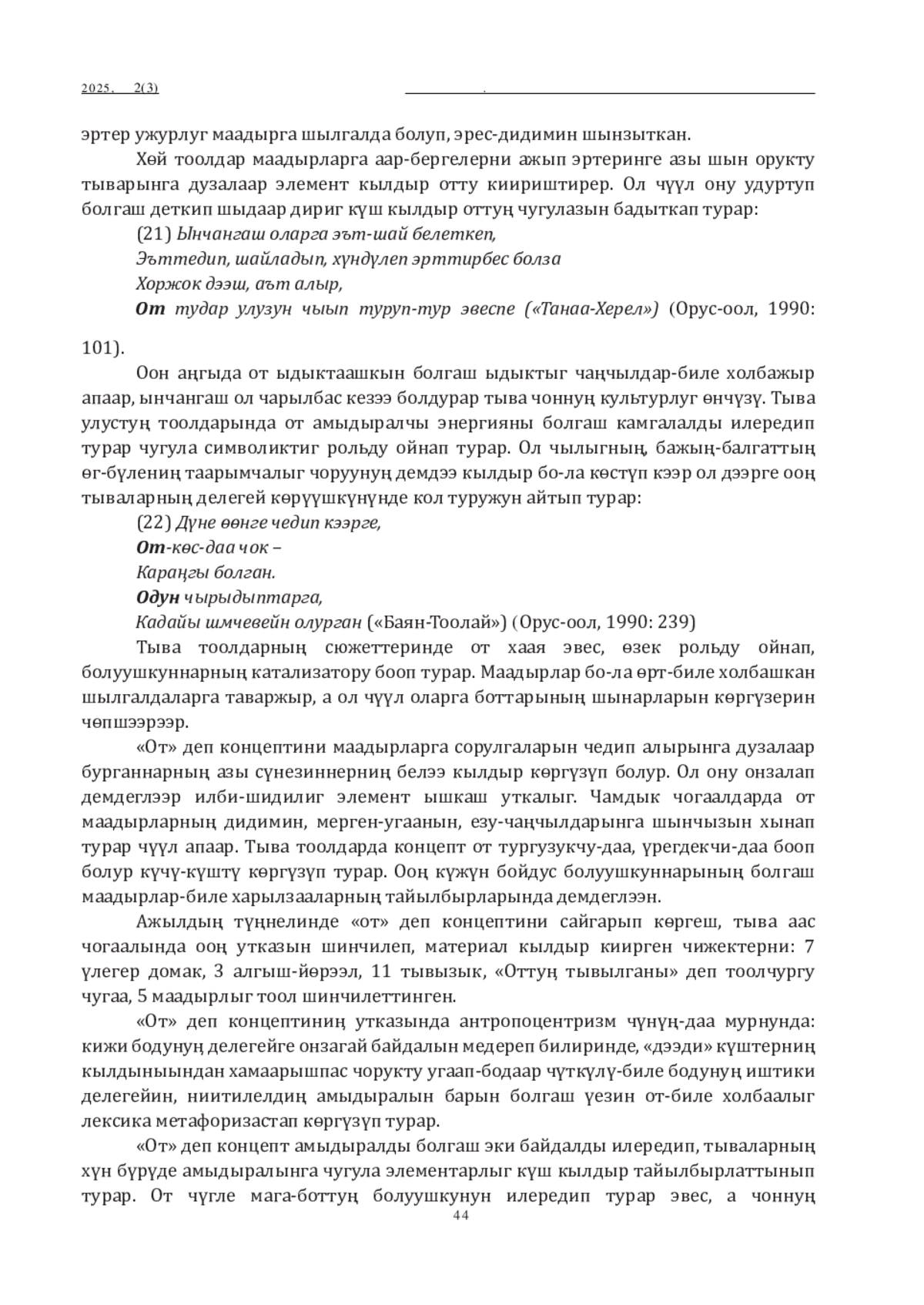 Статья: КОНЦЕПТ ОТ ‘ОГОНЬ’ В УСТНОМ НАРОДНОМ ТВОРЧЕСТВЕ ТУВИНЦЕВ (2025)