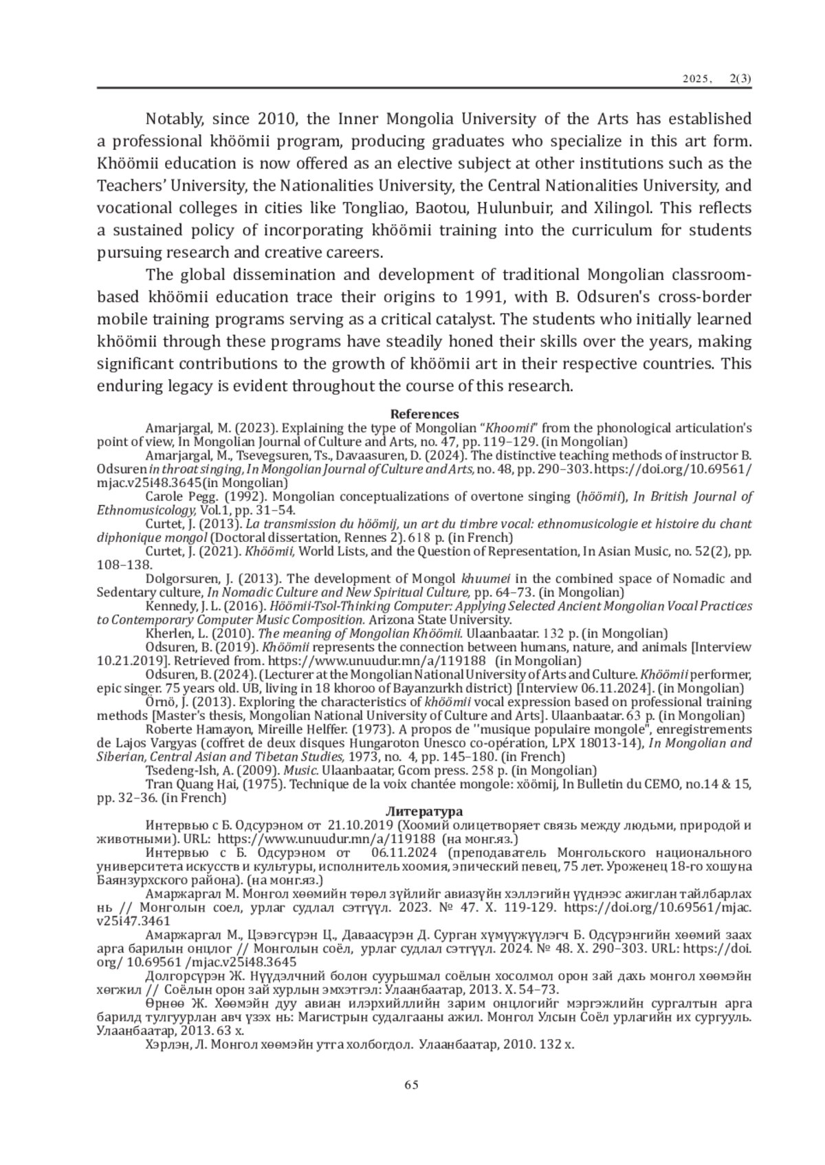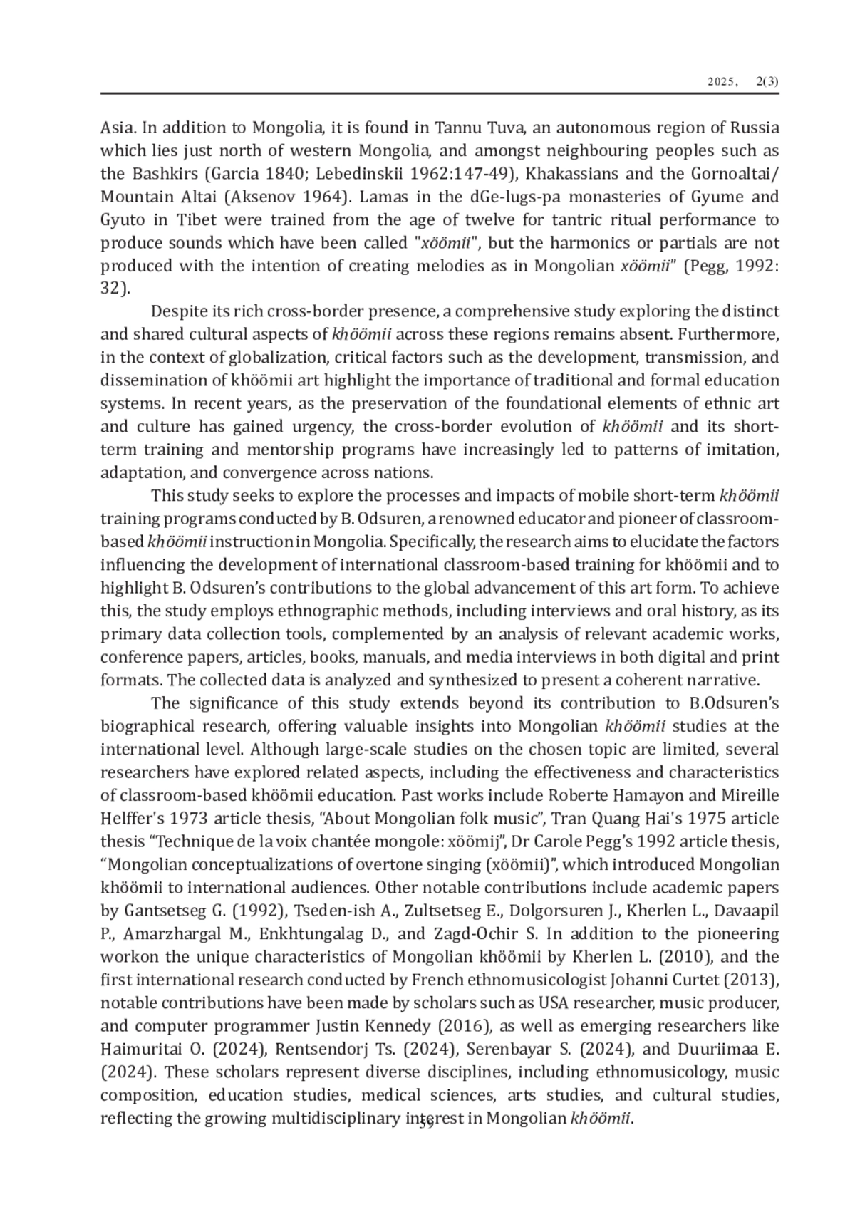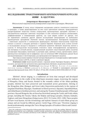 МУНХЖАРГАЛ А., БАЙ С. ИССЛЕДОВАНИЕ ТРАНСГРАНИЧНОГО КРАТКОСРОЧНОГО КУРСА ПО ХООМИЮ Б. ОДСУРЭНА // ХООМЕЙ И КУЛЬТУРНОЕ НАСЛЕДИЕ НАРОДОВ ЦЕНТРАЛЬНОЙ АЗИИ. 2025. № 2