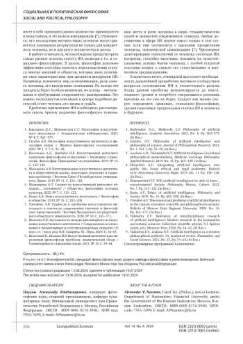 Ключевые фразы: философское знание, искусственный интеллект, социально-философское осмысление, ЭТИЧЕСКИЕ ПРОБЛЕМЫ, философия, философские представления
