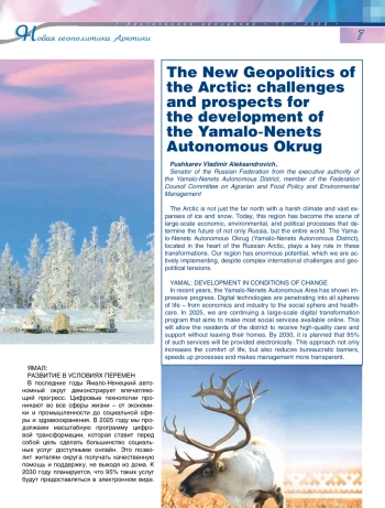 Статья: Новая геополитика Арктики: вызовы и перспективы развития Ямало-Ненецкого автономного округа (2025)