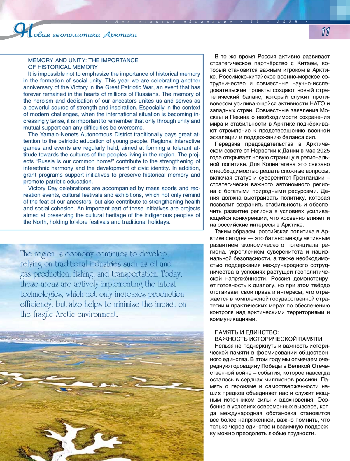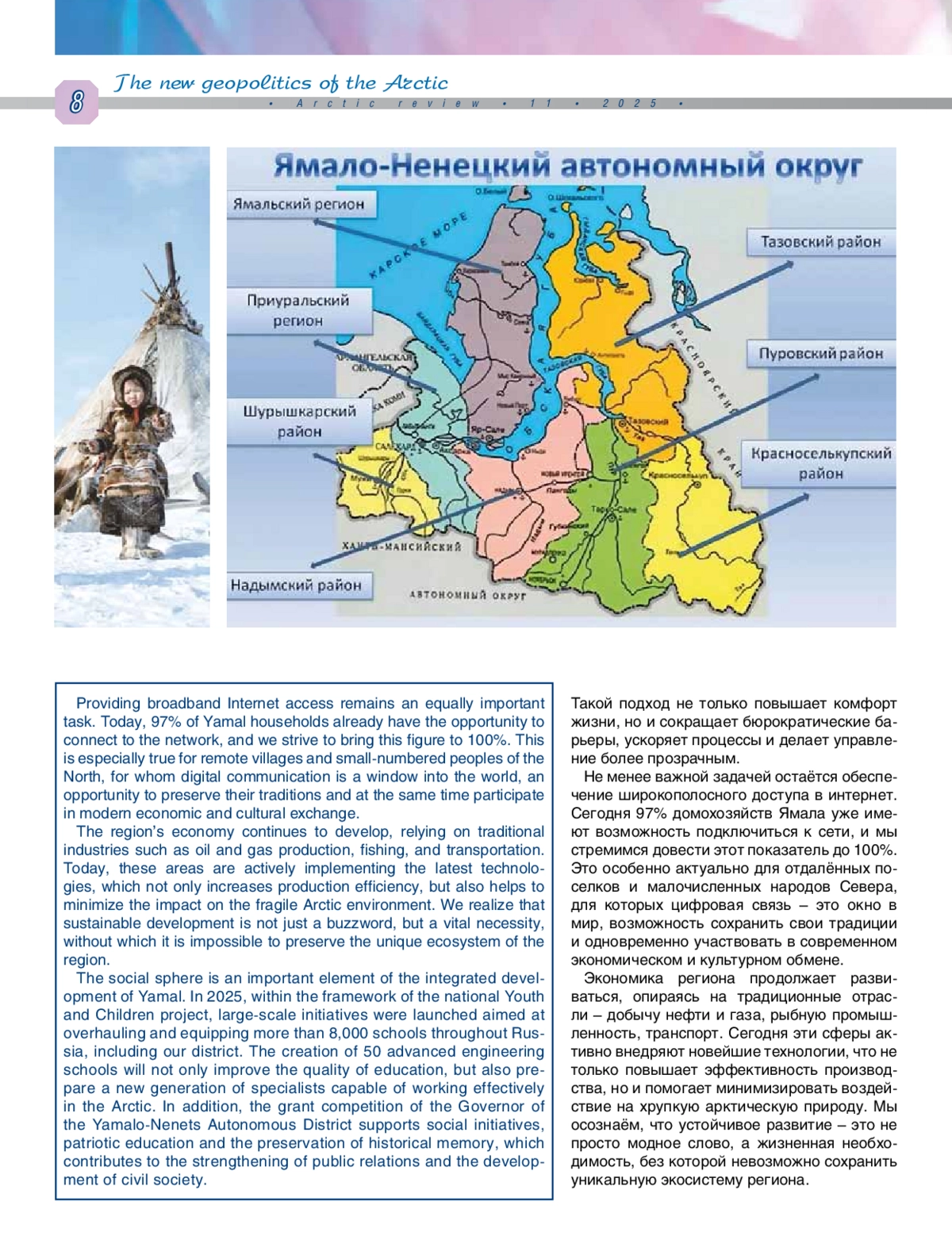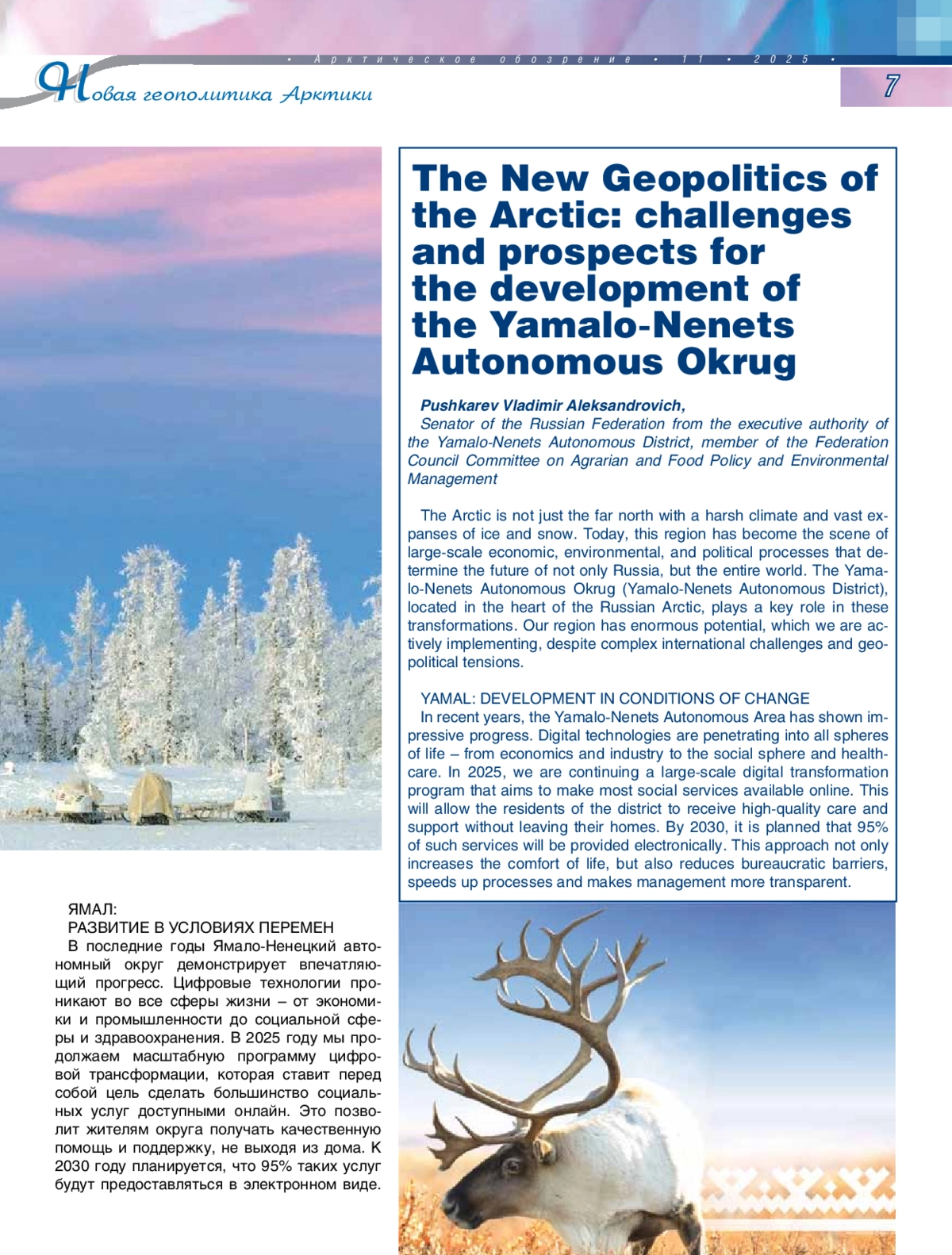 ПУШКАРЕВ В. А. НОВАЯ ГЕОПОЛИТИКА АРКТИКИ: ВЫЗОВЫ И ПЕРСПЕКТИВЫ РАЗВИТИЯ ЯМАЛО-НЕНЕЦКОГО АВТОНОМНОГО ОКРУГА // АРКТИЧЕСКОЕ ОБОЗРЕНИЕ. 2025. № 11