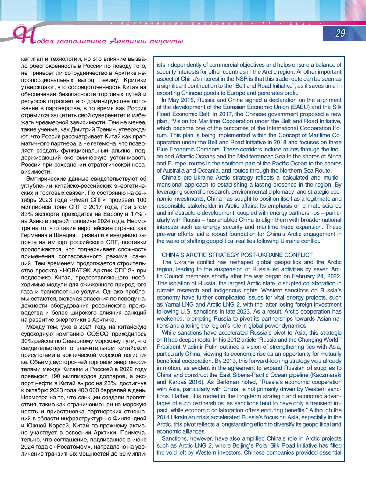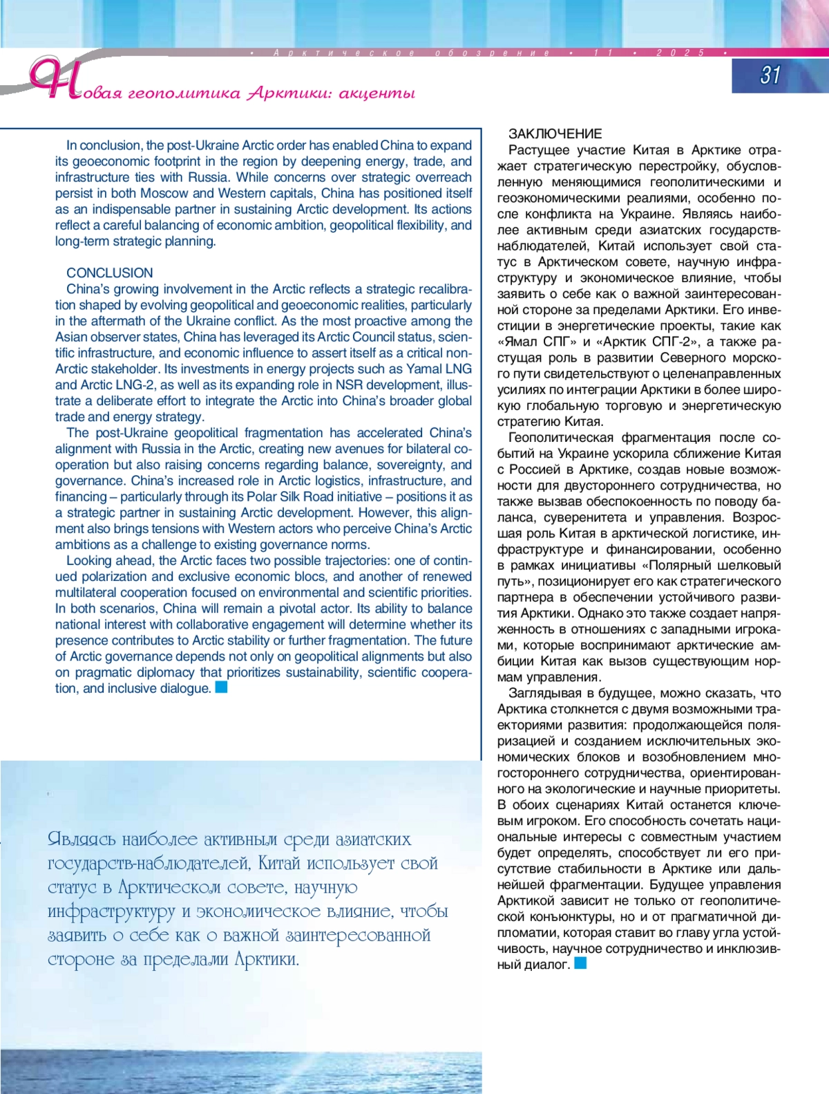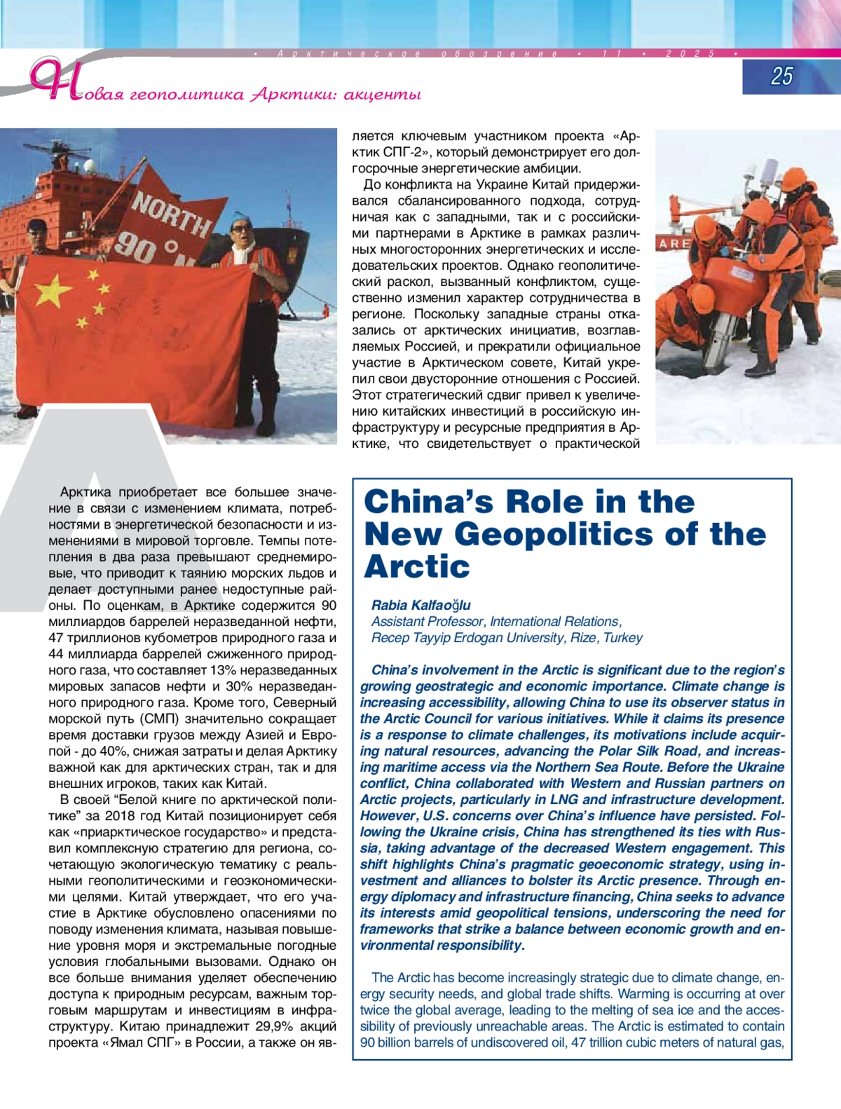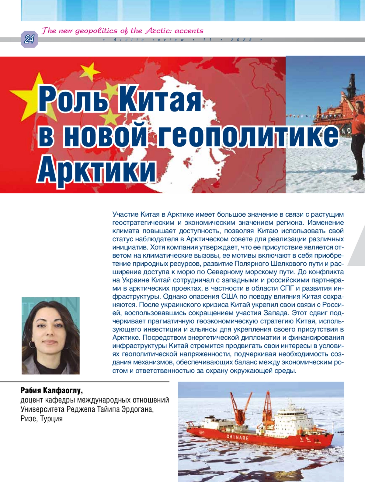 РАБИЯ К. РОЛЬ КИТАЯ В НОВОЙ ГЕОПОЛИТИКЕ АРКТИКИ // АРКТИЧЕСКОЕ ОБОЗРЕНИЕ. 2025. № 11