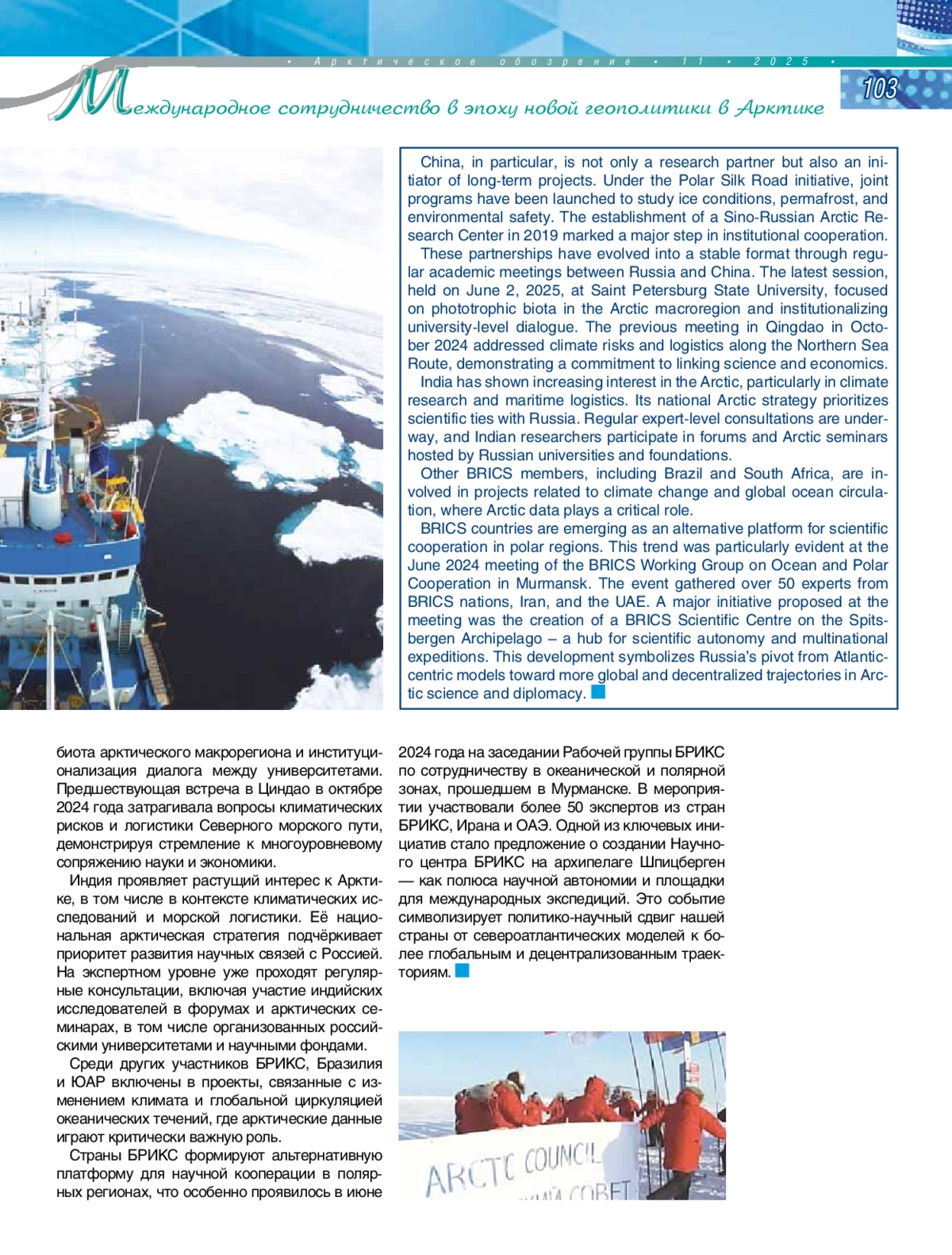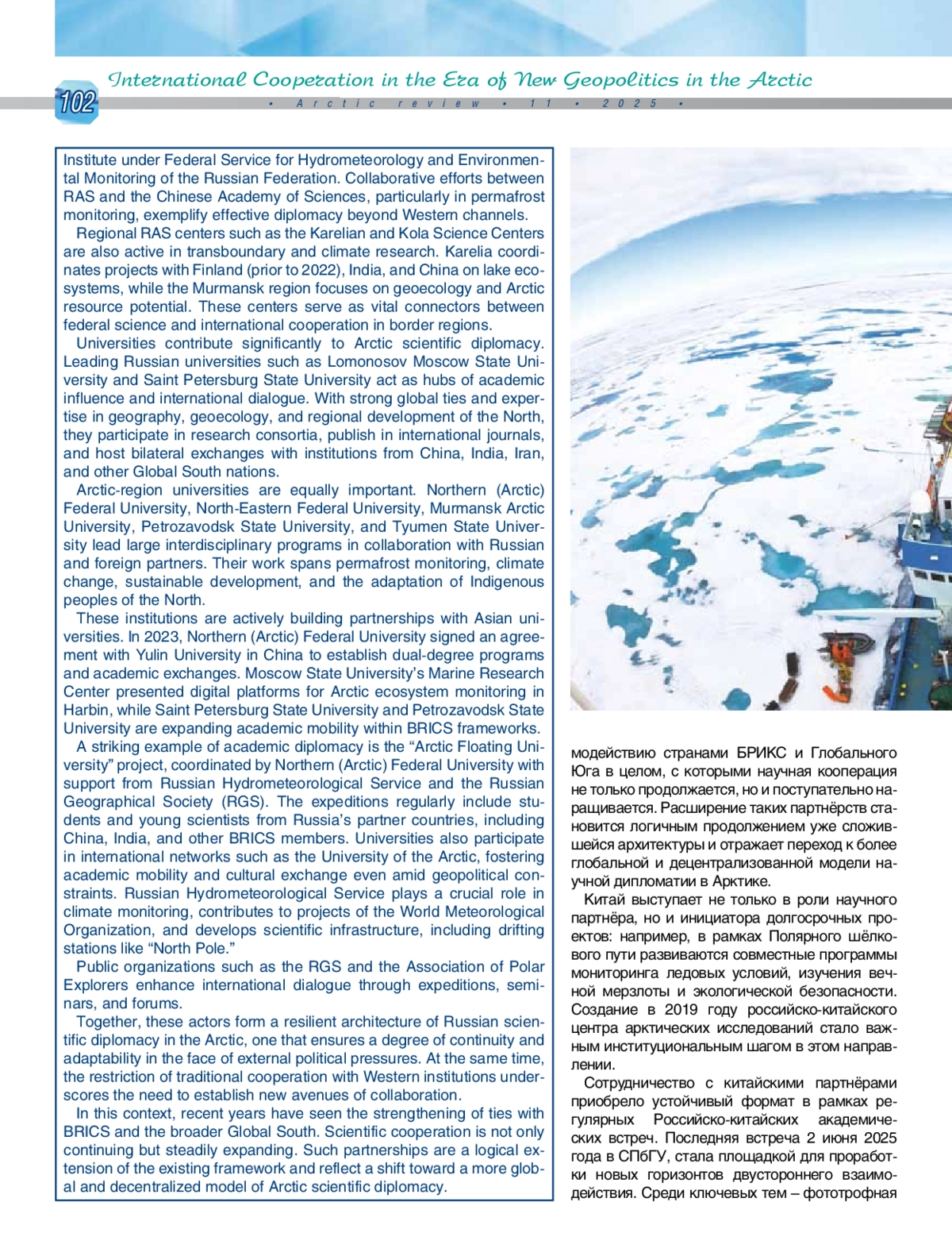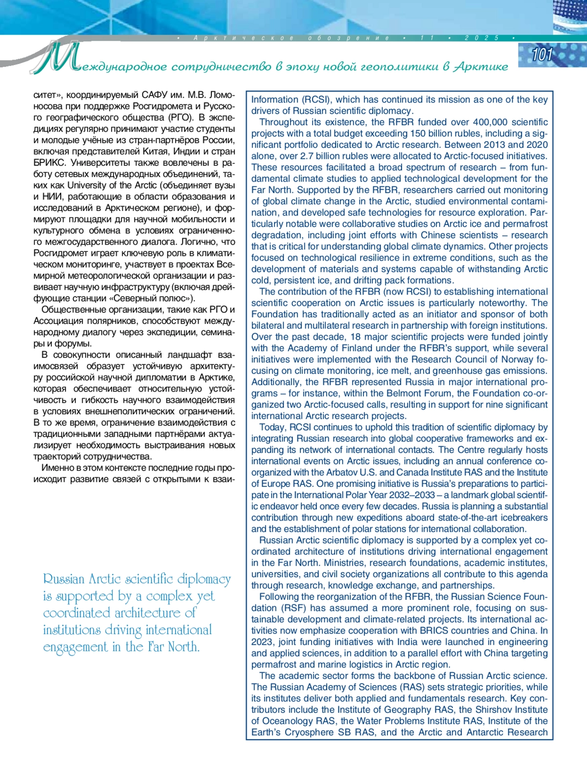 Статья: РОССИЙСКАЯ АРКТИЧЕСКАЯ НАУЧНАЯ ДИПЛОМАТИЯ В МЕНЯЮЩЕМСЯ МИРЕ (2025)