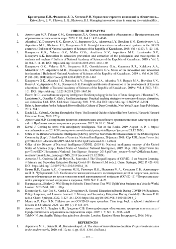 Выводы. Управление стрессом инноваций – системная, рефлексивная активность различных субъектов образования, направленная на минимизацию стрессов инноваций и профилактику их эскалации в целях обеспечения устойчивости образовательных систем. Перспективы исследования, на наш взгляд, связаны с системным описанием таких условий, когда особенности деформаций ценностно-целевого уровня образовательных отношений будут задавать состояние остальных уровней (смыслов и значений, технологий и методов образования).