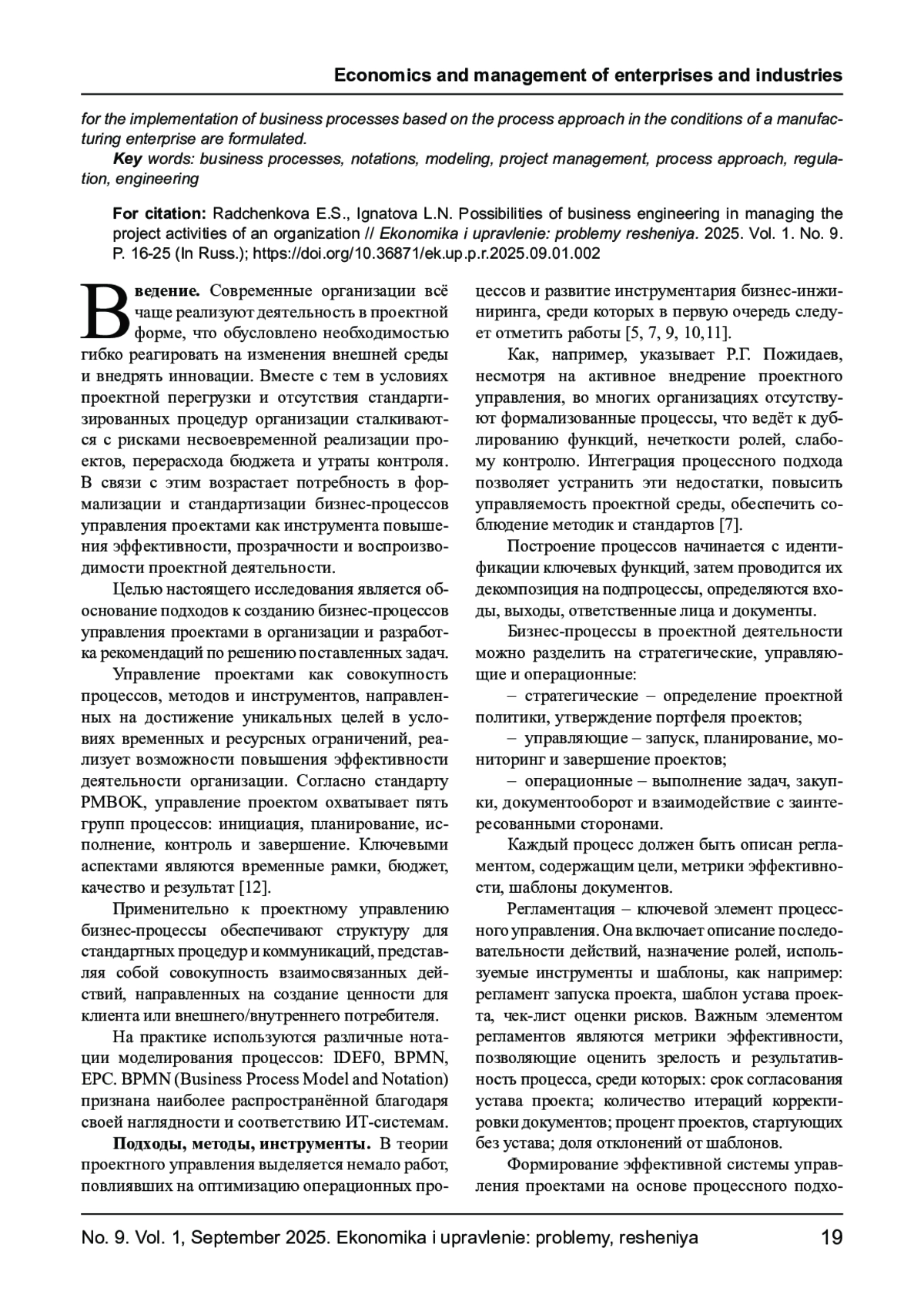 3. Исакова Ю.А. К вопросу о проведении реинжиниринга бизнес-процессов в цифровой экономике //Промышленность: экономика, управление, технологии. - 2023. - Т.2. № 4 (11). - С.14-26. EDN: ACQWAN