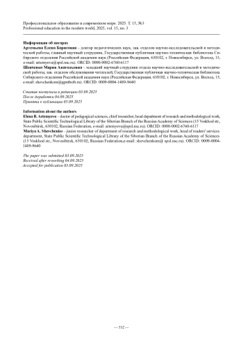 7. Бородина В. А. Изучение + развитие читателя XXI века: опыт, проблемы, решения // Книга и чтение в зеркале социологии: XXI век: сборник статей. СПб. 2023. С. 27-37.