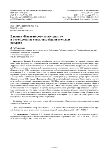 Введение. В условиях устойчивого развития информационных технологий открытые образовательные ресурсы (ООР) становятся одним из ключевых инструментов в научно-образовательной сфере. Эффективность их использования зависит от степени осознания их полезности и доступности для пользователей.