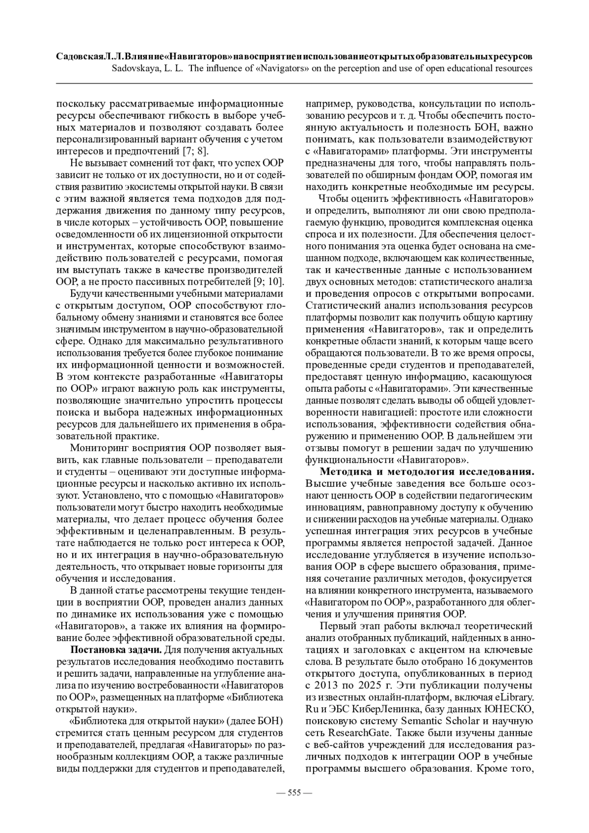 Методика и методология исследования. В исследовании применялись как количественные, так и качественные методы, включая анкетирование и устные опросы преподавателей и студентов. Также проведен анализ статистических данных о посещаемости «Библиотеки для открытой науки» – платформы, предоставляющей доступ к разработанным «Навигаторам по ООР» (далее «Навигаторы», https://lib-os. ru/issledovatelyam/resursy/obrazovatelnye-resursy/) по всем областям знаний, а также использовании ООР. Полученные данные мониторинга позволили собрать разнообразную информацию о восприятии этих ресурсов.