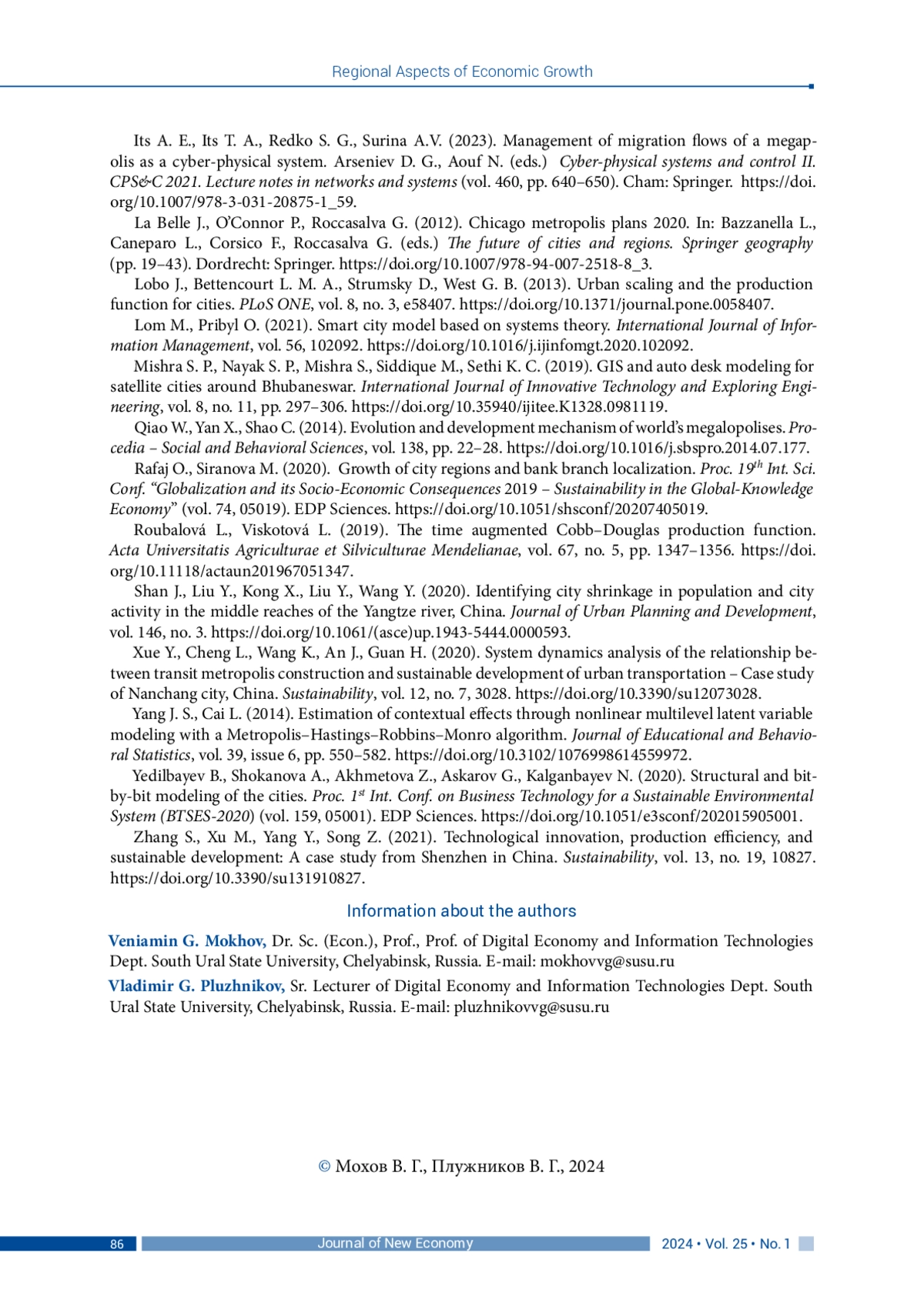 22. Lobo J., Bettencourt L. M. A., Strumsky D., West G. B. (2013). Urban scaling and the production function for cities. PLoS ONE, vol. 8, no. 3, e58407. DOI: 10.1371/journal.pone.0058407