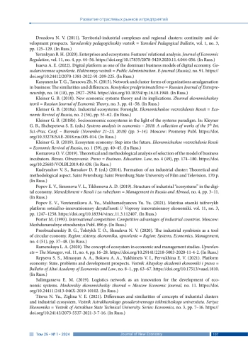 27. Титова Н. Ю., Зиглина В. Е. (2021). Различия и сходства понятий “промышленные кластеры” и “промышленные экосистемы” // Вестник Астраханского государственного технического университета. Серия: Экономика. № 3. С. 7-16. DOI: 10.24143/2073-5537-2021-3-7-16 EDN: LFHWJY