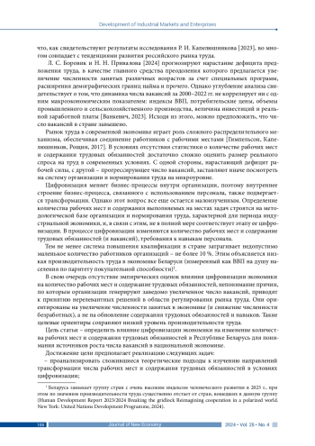 2. Ванкевич Е. В., Зайцева О. В. (2023). Развитие рынка труда Республики Беларусь на современном этапе: тенденции и приоритеты // Общество и экономика. № 5. С. 75-100. DOI: 10.31857/S020736760025548-1 EDN: WZSIKW