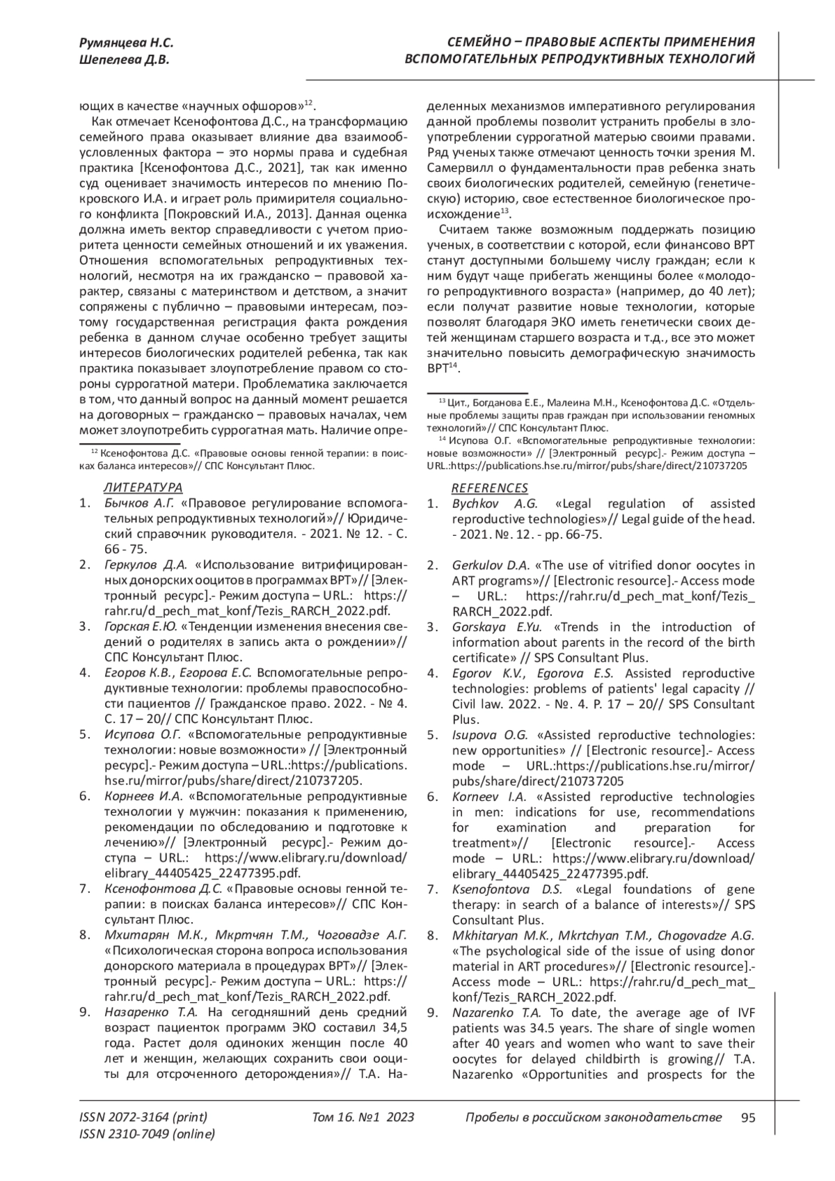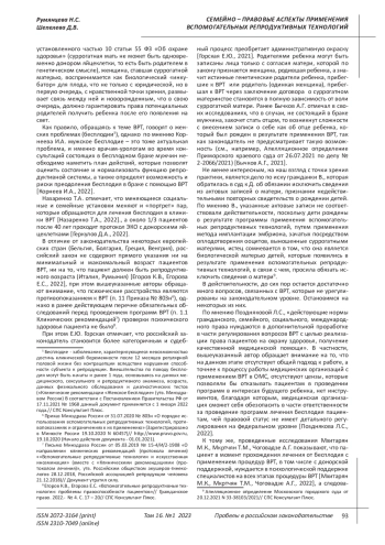 4. Егоров К.В., Егорова Е.С. Вспомогательные репродуктивные технологии: проблемы правоспособности пациентов // Гражданское право. 2022. - № 4. С. 17 - 20// СПС Консультант Плюс. EDN: WJKENU