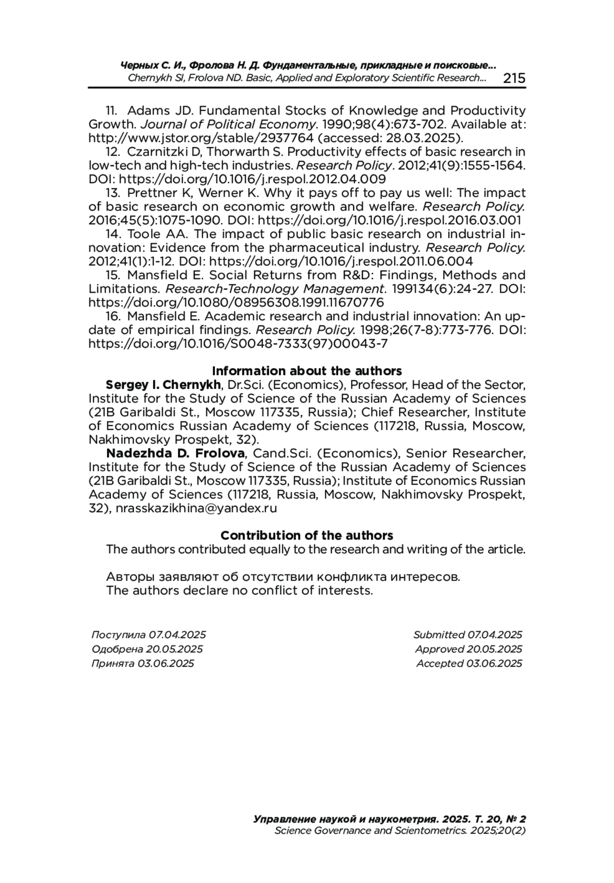 13. Prettner K., Werner K. Why it pays off to pay us well: The impact of basic research on economic growth and welfare // Research Policy. 2016. Vol. 45, Issue 5. P. 1075-1090. DOI: 10.1016/j.respol.2016.03.001