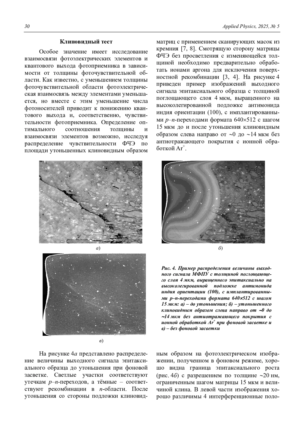 4. Лопухин А. А., Власов П. В., Гришина А. Н., Пермикина Е. В., Шишигин С. Е. Способ изготовления утоньшенного многоэлементного фотоприемника на основе антимонида индия с улучшенной однородностью и повышенной механической прочностью. Патент № RU 2811379 C1 (РФ). 2024.
