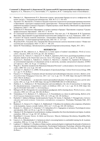 20. Стахмич С.В. Генезис понятий «инклюзия», «инклюзивное образование», «образовательное инклюзивное пространство» // Гуманитарный научный вестник. 2025. № 1. С. 117-123.