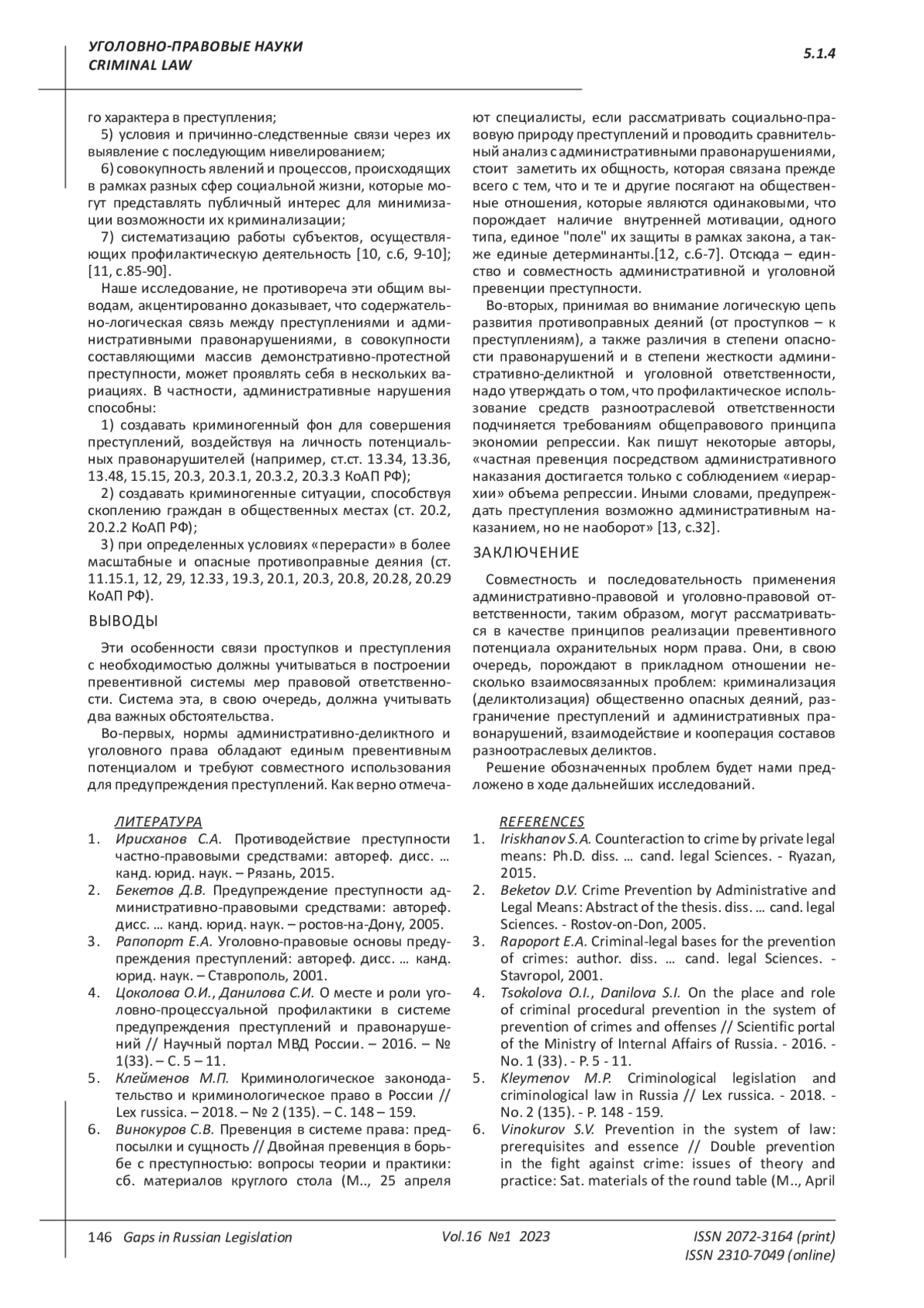 1. Ирисханов С.А. Противодействие преступности частно-правовыми средствами: автореф. дисс. … канд. юрид. наук. - Рязань, 2015. EDN: ZPOXGL