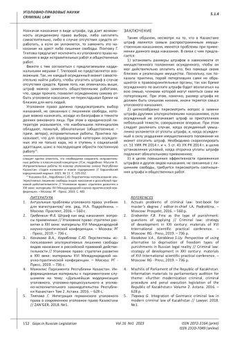 Статья: ШТРАФ КАК ВИД УГОЛОВНОГО НАКАЗАНИЯ В РЕСПУБЛИКЕ КАЗАХСТАН (2023)