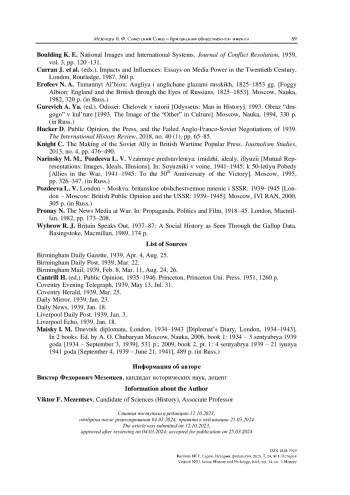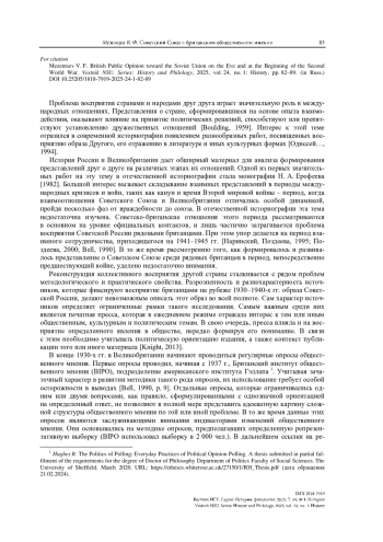МЕЗЕНЦЕВ В. Ф. СОВЕТСКИЙ СОЮЗ В БРИТАНСКОМ ОБЩЕСТВЕННОМ МНЕНИИ НАКАНУНЕ И В НАЧАЛЕ ВТОРОЙ МИРОВОЙ ВОЙНЫ // ВЕСТНИК НГУ. СЕРИЯ: ИСТОРИЯ, ФИЛОЛОГИЯ. 2025. ТОМ 24, № 1
