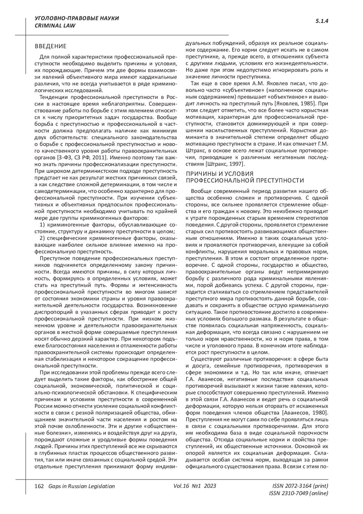 8. Крюкова Н.И. Профессиональная преступность в России (источники возникновения, развития и становления) // Мировой судья. 2015. N 4. С. 18 - 23. EDN: TPUBLN