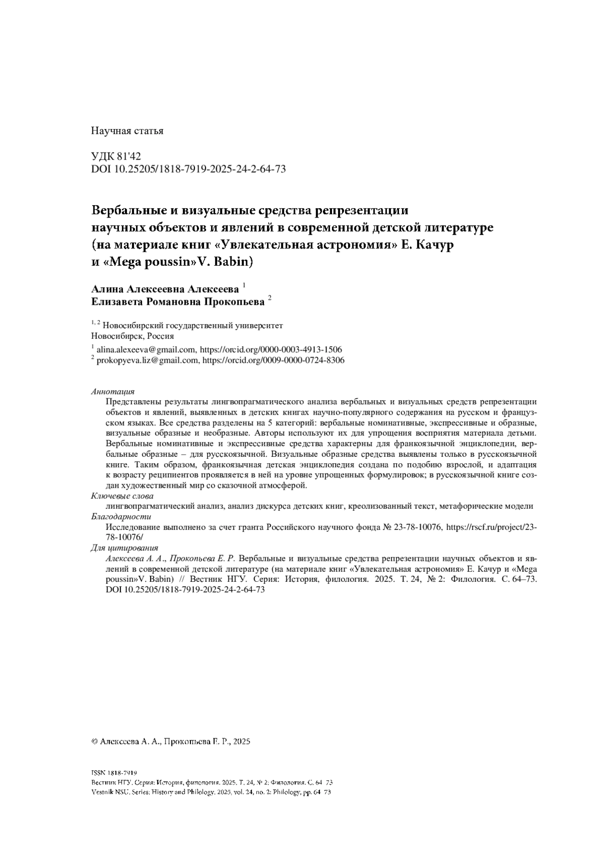 - 10.25205/1818-7919-2025-24-2-64-73
