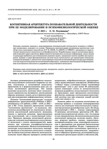Статья: КОГНИТИВНАЯ АРХИТЕКТУРА ПОЗНАВАТЕЛЬНОЙ ДЕЯТЕЛЬНОСТИ ПРИ ЕЕ МОДЕЛИРОВАНИИ И ПСИХОФИЗИОЛОГИЧЕСКОЙ ОЦЕНКЕ (2023)