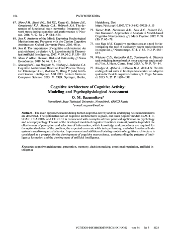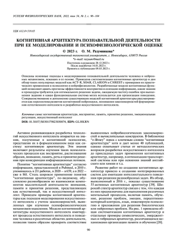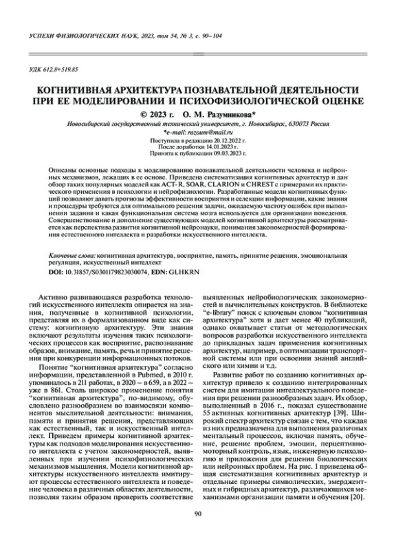 РАЗУМНИКОВА О. М. КОГНИТИВНАЯ АРХИТЕКТУРА ПОЗНАВАТЕЛЬНОЙ ДЕЯТЕЛЬНОСТИ ПРИ ЕЕ МОДЕЛИРОВАНИИ И ПСИХОФИЗИОЛОГИЧЕСКОЙ ОЦЕНКЕ // УСПЕХИ ФИЗИОЛОГИЧЕСКИХ НАУК. 2023. Т. 54 № 3 (6 СТ.)