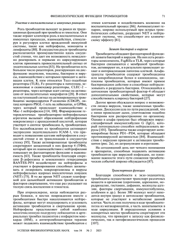 80. Mandel J., Casari M., Stepanyan M., Martyanov A., Deppermann C. Beyond hemostasis: platelet innate immune interactions and thromboinflammation // Int. J. Mol. Sci. 2022. V. 23. P. 3868. DOI: 10.3390/ijms23073868 EDN: UQFNUT