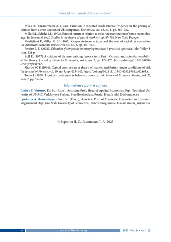 8. Раменская Л. А. (2015). О парадоксе доходности и риска в российских промышленных компаниях // Управленец. № 4 (56). С. 36-41. EDN: ULTZBN