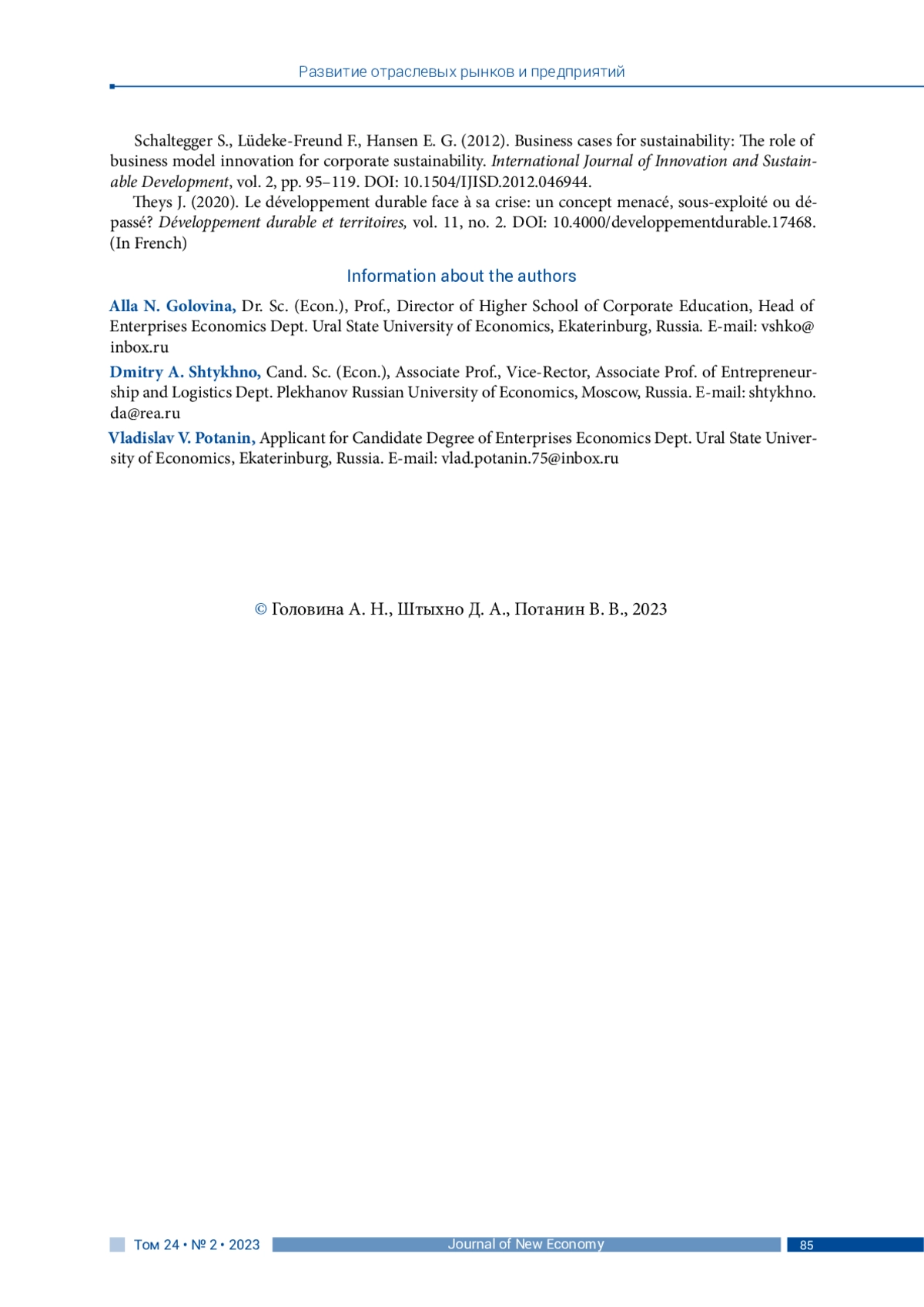 5. Романовская Е. В., Козлова Е. П. (2018). Содержание механизмаустойчивого развития промышленного предприятия // Вестник Нижегородского университета им. Н.И. Лобачевского. Серия “Социальные науки”. № 2 (50). С. 25-30. EDN: XWPOKD