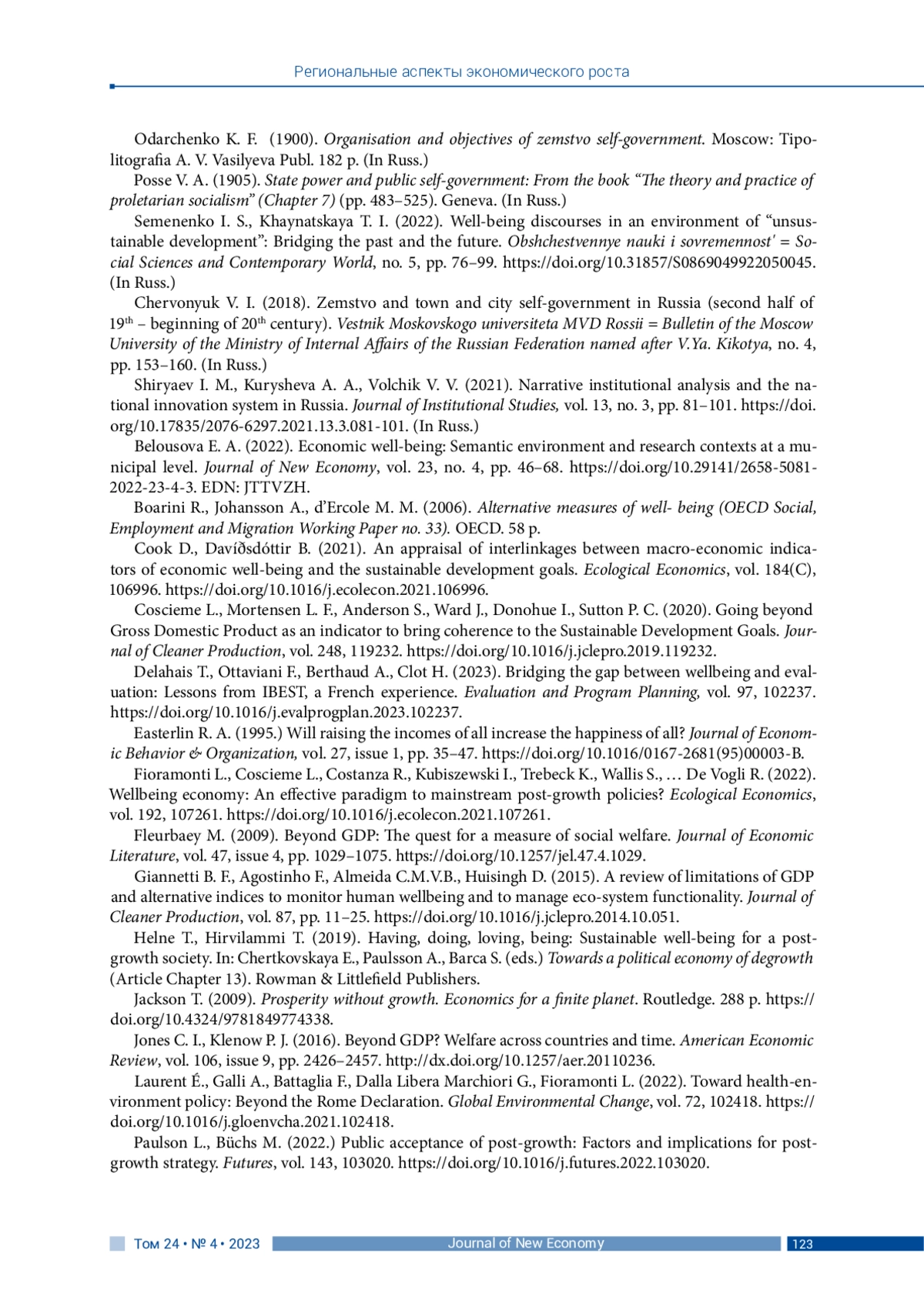 19. Belousova E. A. (2022). Economic well-being: Semantic environment and research contexts at a municipal level. Journal of New Economy, vol. 23, no. 4, pp. 46-68. DOI: 10.29141/2658-5081-2022-23-4-3 EDN: JTTVZH