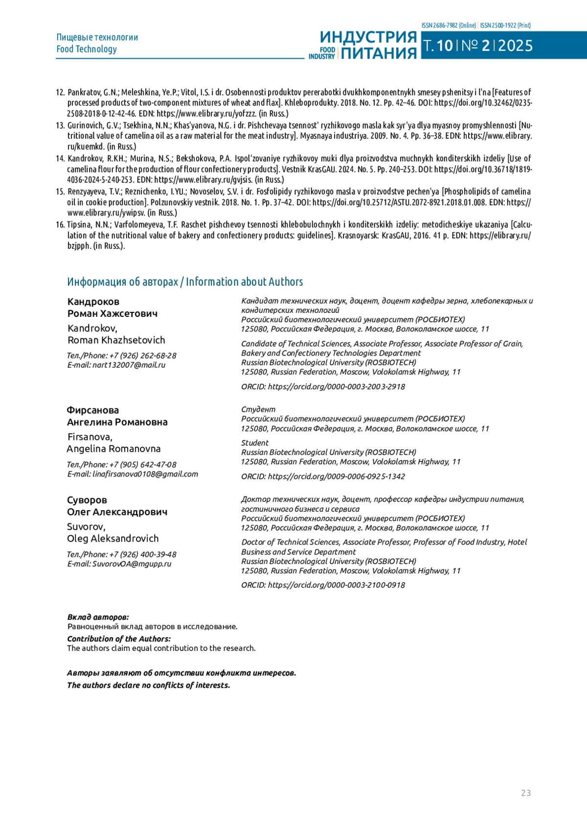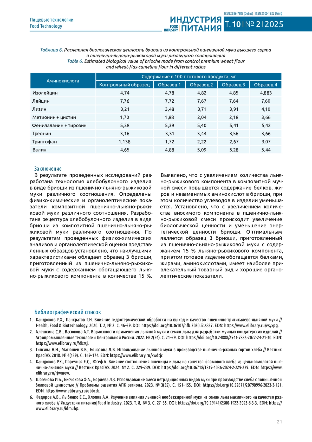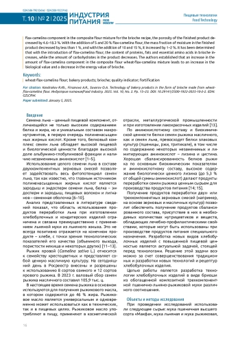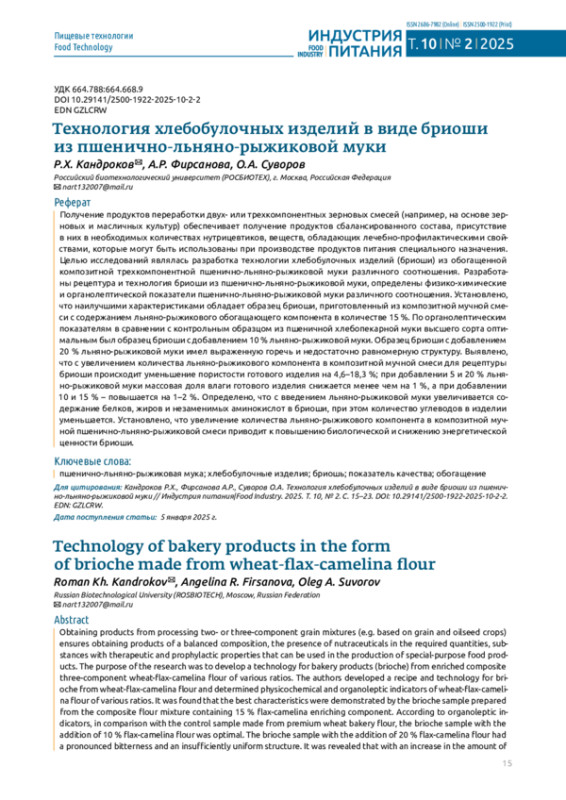 КАНДРОКОВ Р. Х., ФИРСАНОВА А. Р., СУВОРОВ О. А. ТЕХНОЛОГИЯ ХЛЕБОБУЛОЧНЫХ ИЗДЕЛИЙ В ВИДЕ БРИОШИ ИЗ ПШЕНИЧНО-ЛЬНЯНО-РЫЖИКОВОЙ МУКИ // ИНДУСТРИЯ ПИТАНИЯ. 2025. Т. 10 № 2