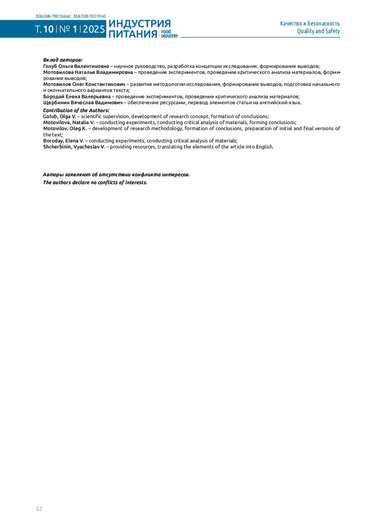 14. Заворохина Н.В., Богомазова Ю.И., Феофилактова О.В. Использование дескрипторно-профильного метода дегустационного анализа при разработке сывороточных напитков // Пищевая промышленность. 2019. № 7. С. 50-53. 10.24411/0235-2486-2019-10100. DOI: 10.24411/0235-2486-2019-10100.EDN EDN: LGPCZP