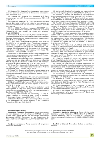 22. Федоров А.Л., Медведева Л.Н. Малые города в векторе экономических преобразований агропромышленного комплекса // Никоновские чтения. 2023. № 28. С. 213-218.