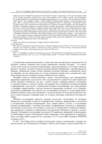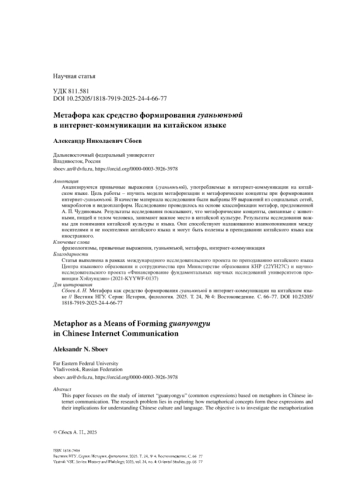 Статья: Метафора как средство формирования гуаньюнъюй в интернет-коммуникации на китайском языке (2025)