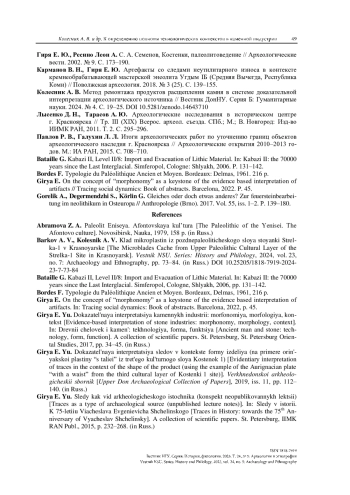 15. Gorelik A., Degermendzhi S., Körlin G. Gleiches oder doch etwas anderes? Zur feuersteinbearbeitung im neolithikum in Osteuropa // Anthropologie (Brno). 2017. Vol. 55, iss. 1-2. Р. 139-180.