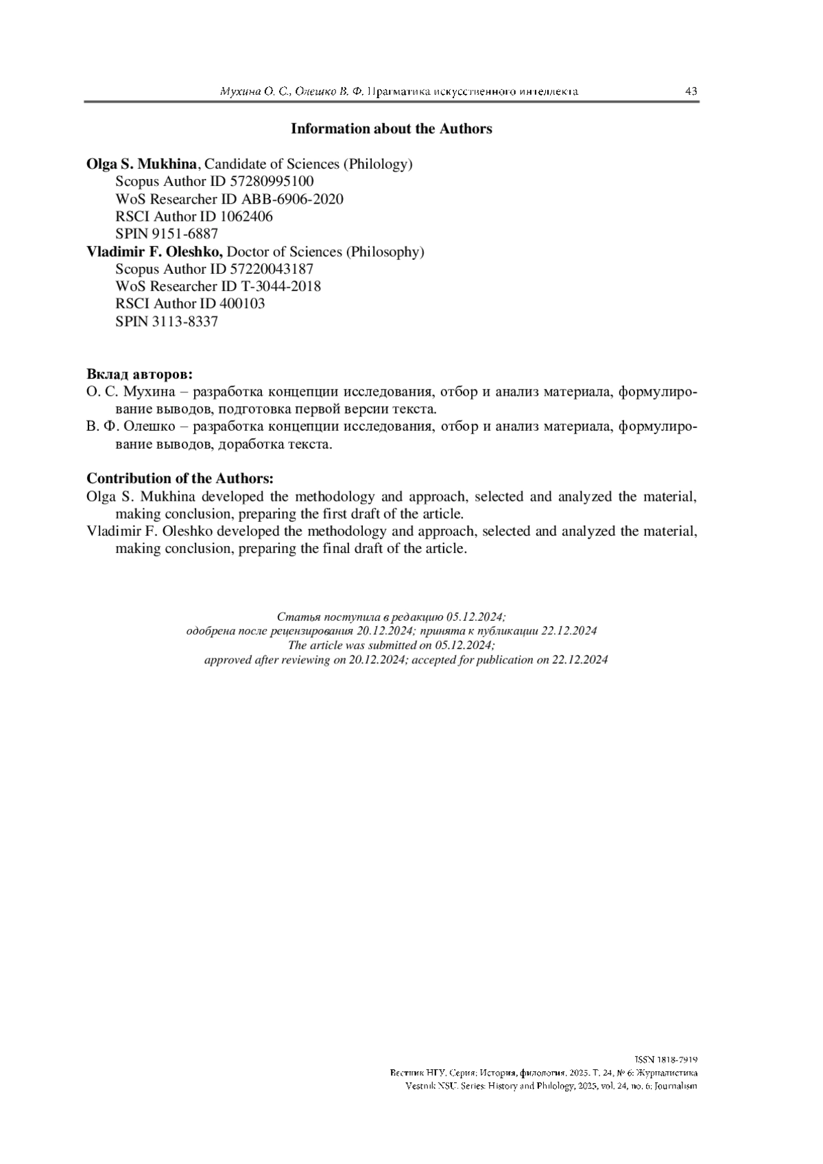 14. Шабалин А. Д. (Не)медиатекст: коммуникативные маркеры AI-текстов (на примере материалов чат-бота ChatGPT) // Медиалингвистика: Материалы докладов участников VII Междунар. конф. СПб., 2023. С. 802-806.