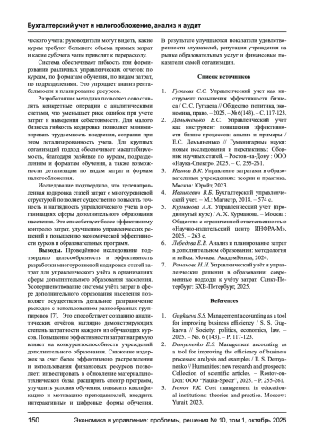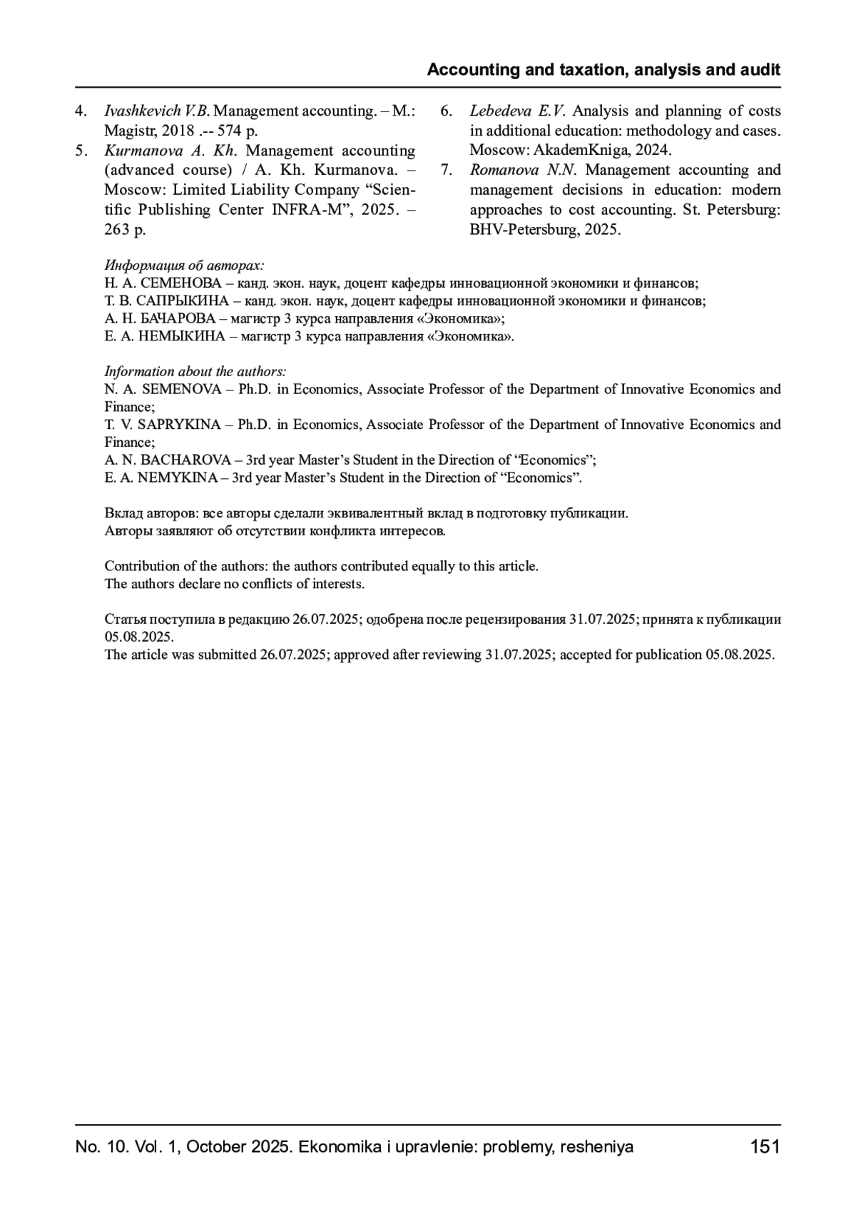 7. Романова Н.Н. Управленческий учёт и управленческие решения в образовании: современные подходы к учёту затрат. Санкт-Петербург: БХВ-Петербург, 2025.