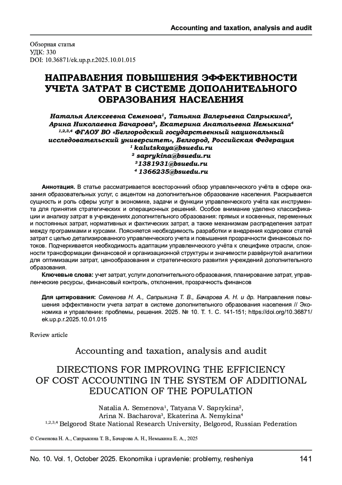 6. Лебедева Е.В. Анализ и планирование затрат в дополнительном образовании: методология и кейсы. Москва: АкадемКнига, 2024.