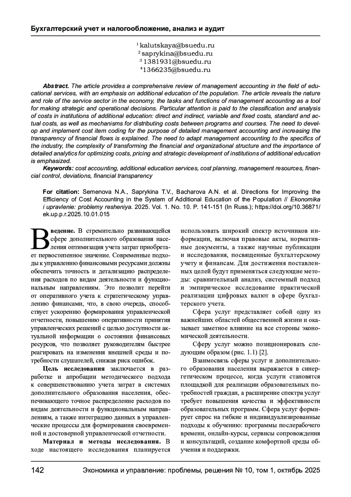 2. Демьяненько Е.С. Управленческий учет как инструмент повышения эффективности бизнес-процессов: анализ и примеры / Е.С. Демьяненько // Гуманитарные науки: новые исследования и перспективы: Сборник научных статей. - Ростов-на-Дону: ООО “Наука-Спектр”, 2025. - С. 255-261. EDN: HRRUGA